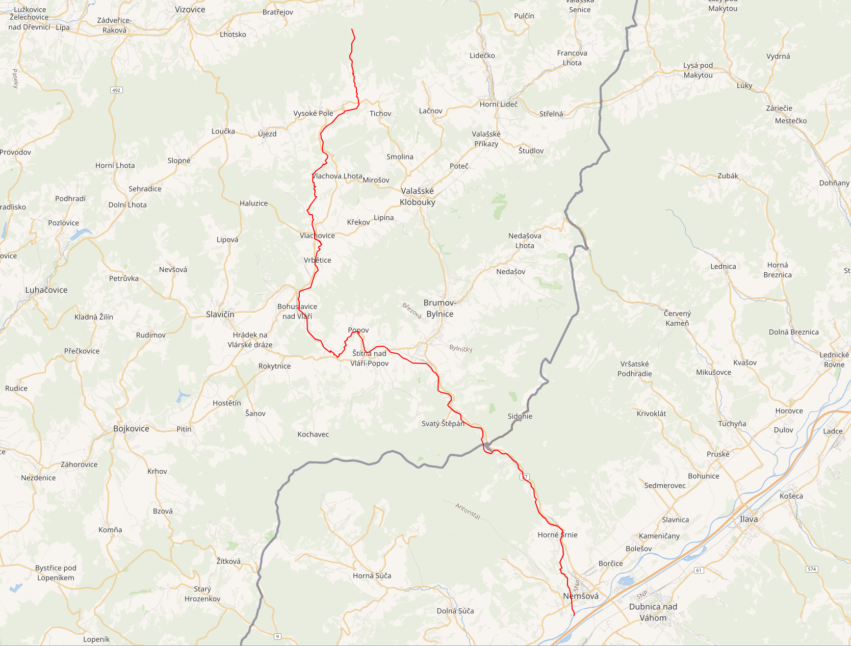 do Váhu na Slovensku v Nemšovej vo výške 217.4 m n.m.